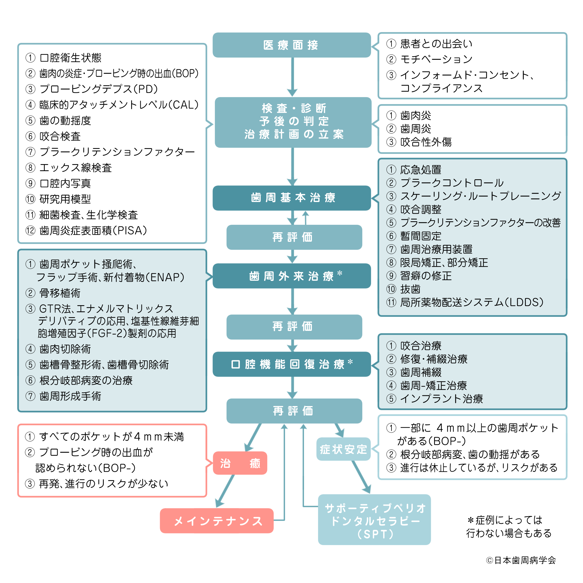 歯周病は、細菌感染による炎症疾患であるとともに、歯科疾患の中で唯一の生活習慣病です。そして、糖尿病をはじめとする多くの全身疾患と関係することが明らかになりつつあるため、歯周病の治療においては、局所の原因因子を除去するだけでなく、全身的な管理が重要です